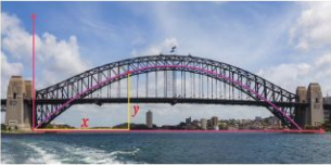 Cầu cảng Sydney là một trong những hình ảnh biểu tượng của thành phố Sydney và nước Australia. Độ cao y(m) của một điểm thuộc vòng cung thành cầu cảng Sydney có thể biểu thị theo độ dài x(m) tính từ chân cầu bên trái dọc theo đường nối với chân cầu bên phải như sau (Hình 10):