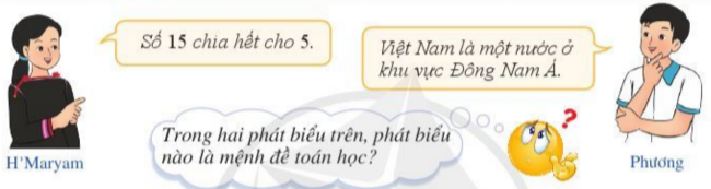 Mệnh đề “Số 15 chia hết cho 5” là một mệnh đề toán học.