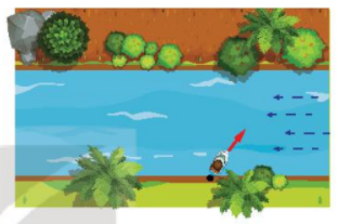 Một con tàu chuyển động từ bờ bên này sang bờ bên kia của một dòng sông với vận tốc riêng không đổi. Giả sử vận tốc dòng nước là không đổi và đáng kể, các yếu tố bên ngoài khác không ảnh hưởng đến vận tốc thực tế của tàu. Nếu không quan tâm đến điểm đến thì cần giữ lái cho tàu tạo với bờ sông một góc bao nhiêu để tàu sang bờ bên kia được nhanh nhất?