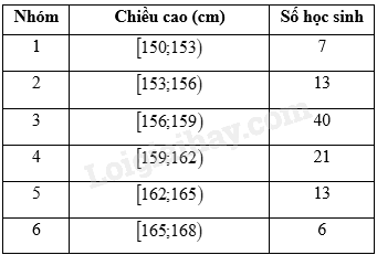 Giá trị đại diện của nhóm \(\left[ {159;162} \right)\) là: \(\frac{1}{2}\left( {159 + 162} \right) = 160,5\)