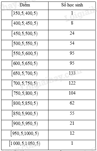 Giá trị đại diện của nhóm \(\left[ {650,5;700,5} \right)\) là: \(\frac{1}{2}\left( {650,5 + 700,5} \right) = 675,5\)