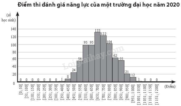 Trả lời các câu hỏi 1- 5 dựa trên đồ thị thể hiện điểm thi đánh giá năng lực của một trường đại học vào năm 2020 dưới đây.