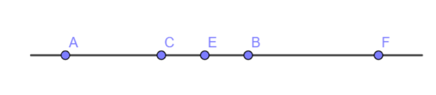 Câu 1. Trong hình vẽ bên, những điểm nằm giữa hai điểm A và B là: A. Điểm C,E,F B. Điểm A,C,E,B C. Điểm C, E D. Điểm F.