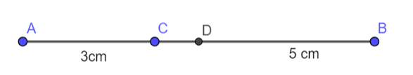 Câu 2. Cho điểm C nằm giữa hai điểm A và B sao cho AC = 3 cm; CB = 5 cm. Gọi D là trung điểm của đoạn thẳng AB. Câu nào dưới đây đúng?