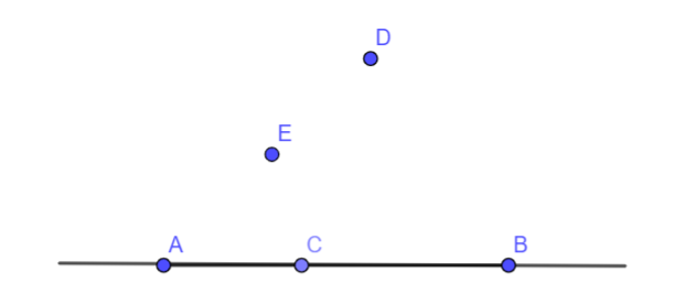 D. Điểm A và B nằm về cùng một phía đối với điểm E.