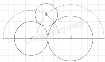 Vẽ đường tròn (C; 2), khi đó ta được đường tròn (C; 2) tiếp xúc ngoài với cả hai đường tròn (A) và (B).