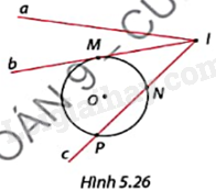Xác định vị trí tương đối của đường tròn (O) với các đường thẳng a, b và c trong Hình 5.26. Chỉ ra tiếp điểm, giao điểm của chúng (nếu có).