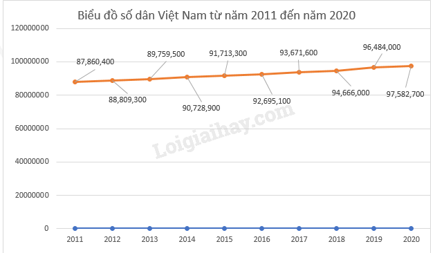 – Vẽ biểu đồ đoạn thẳng biểu diễn số dân của Việt Nam từ năm 2011 đến năm 2020