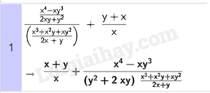 \(\frac{{{x^4} – x{y^3}}}{{2{\rm{x}}y + {y^2}}}:\frac{{{x^3} + {x^2}y + x{y^2}}}{{2{\rm{x}} + y}} + \frac{{y + x}}{x}\)