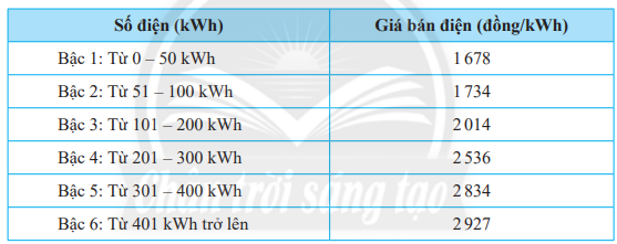 Tiền điện = số kWh tiêu thụ . giá tiền / kWh ( theo bậc)