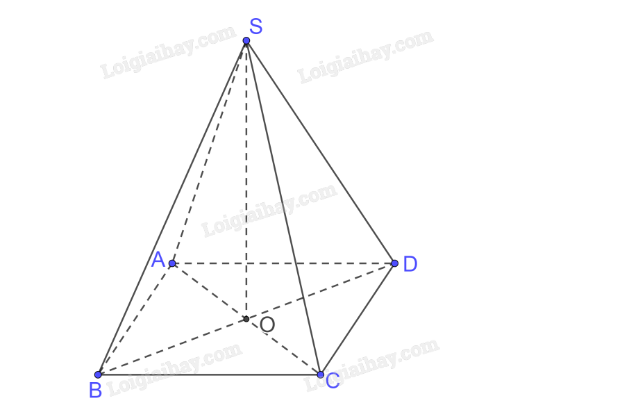 Gọi \(AC \cap BD = \left\{ O \right\}\) mà S.ABCD đều nên \(SO \bot \left( {ABCD} \right)\)