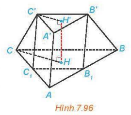 Thể tích hình lăng trụ \(V = HH’.S’ = h.\frac{{{a^2}\sqrt 3 }}{4}\)