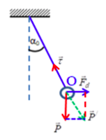 \(\begin{array}{l}\tan {\alpha _0} = \dfrac{{{F_d}}}{P} = \dfrac{{qE}}{{mg}} = \dfrac{{{{10}^{ – 6}}{{.8.10}^4}}}{{{{50.10}^{ – 3}}.9,8}}\\ \Rightarrow {\alpha _0} = 9,{27^0}\end{array}\)