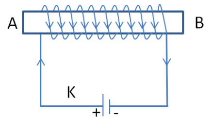 Do đầu B của ống dây là cực Bắc được để gần với cực Bắc của kim nam châm \( \Rightarrow \) tương tác đẩy