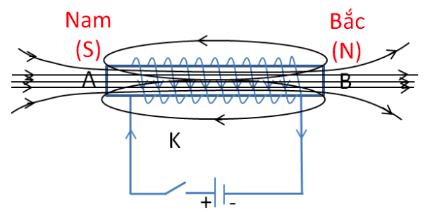 + Đầu A là cực nam (S), đầu B là cực bắc (N)
