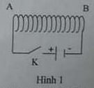 b) Trong thí nghiệm như hình vẽ (Hình 1), hai đầu của ống dây được nối với nguồn điện qua khóa K. Khi đóng khóa K, hãy xác định tên các từ cực của ống dây.