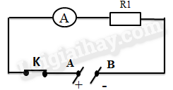 Cho mạch điện có sơ đồ như hình vẽ, điện trở \({R_1} = 15\Omega \), hiệu điện thế giữa hai đầu đoạn mạch là \({U_{AB}} = 18V\). Tính cường độ dòng điện I1 chạy qua điện trở R1.