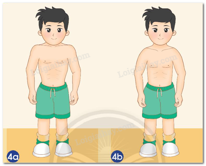 – Hình 4a vẽ bạn đang hít vào, vì bụng bạn ấy co lại, ngực nở ra, vai gồng lên.