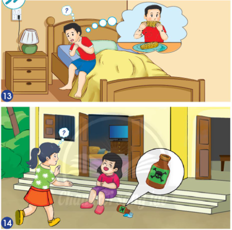 + Tình huống: lúc chiều, bạn nam có ăn một bắp ngô. Đến tối, bạn nam cảm thấy khó chịu, buồn nôn. Có thể là bắp ngô mà bạn nam ấy ăn lúc chiều đã bị hỏng do không được bảo quản cẩn thận
