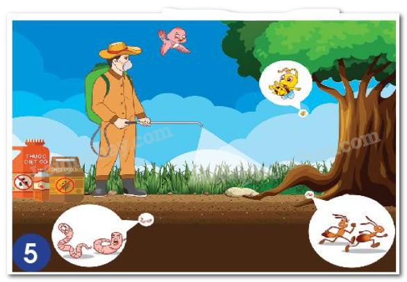 Chim đáp: Người phun thuốc sâu đang chuẩn bị phun thuốc ở cây nhà cậu đó!