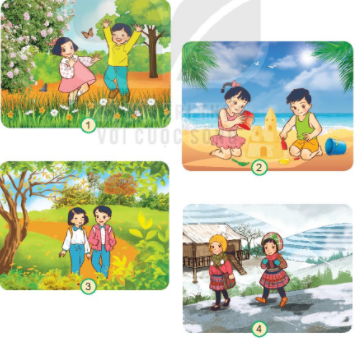 – Hình 2: Mùa hè (vì trời nóng nên các bạn nhỏ được đi biển chơi).