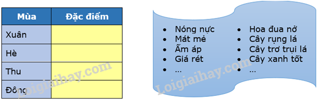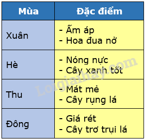 2. Dựa vào cảm nhận và sự quan sát của em về các mùa trong năm.