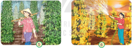– Hình 6: mùa khô (vì trời nắng, ruộng nứt nẻ, lá cây vàng, người nông dân phải tưới nước).