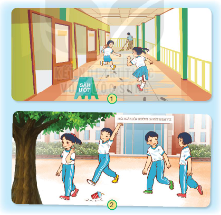 Em quan sát kĩ các hình trong sách giáo khoa và cho biết các bạn nhỏ đang làm gì. Chỉ ra những việc làm em không đồng tình và giải thích lý do.