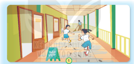 + Em không đồng tình với việc làm của các bạn vì bác lao công vừa mới dọn dẹp, lau chùi xong và đã để biển thông báo rồi nhưng các bạn vẫn cố tình chạy vào làm bẩn nền. Hơn nữa, các bạn còn có thể bị ngã vì sàn trơn trượt.