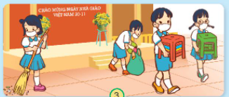 Cho biết các bạn trong mỗi hình đang làm gì. Những việc làm nào của các bạn mà em không đồng tình. Vì sao.