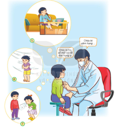 – Minh phải đi khám bệnh vì đau họng, sổ mũi và ho. Bác sĩ nói Minh bị viêm họng.