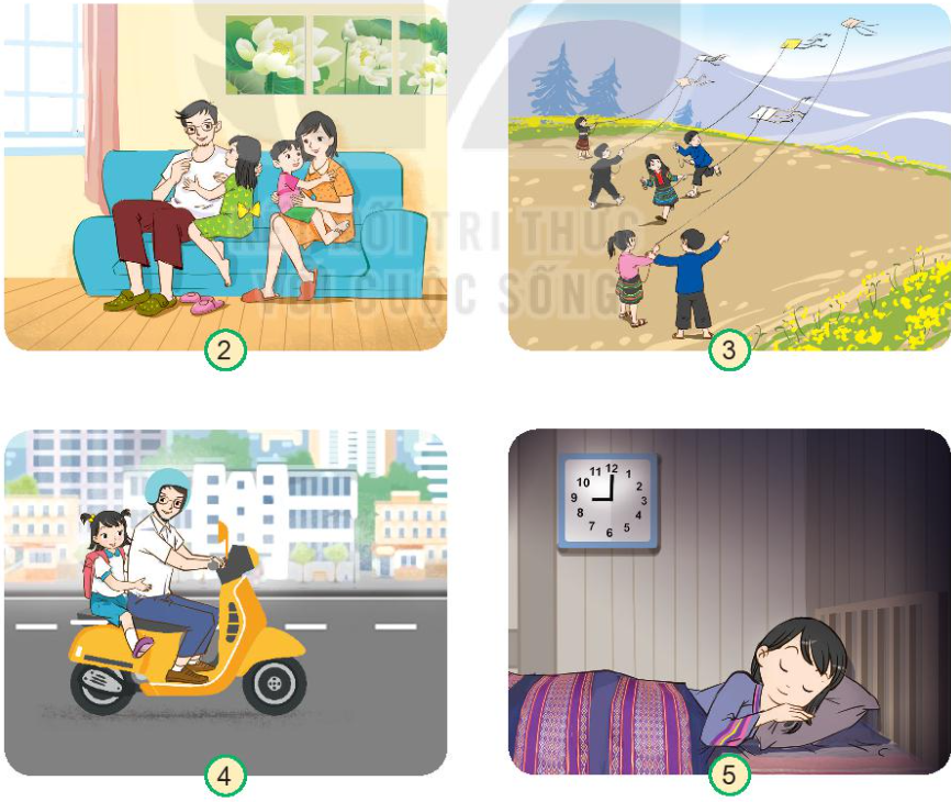 Vì ở các hình đó, các bạn được vui chơi thoải mái bên gia đình, bạn bè, người thân, ngủ đủ giấc và đúng giờ.