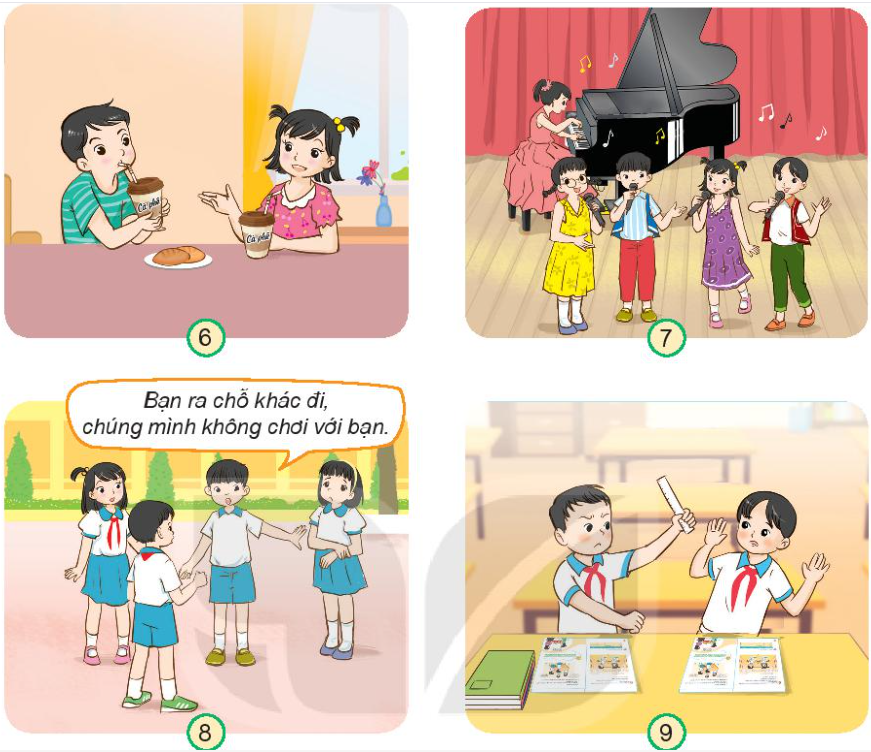 Vì các bạn trong hình tham gia giao thông không đội mũ bảo hiểm, ăn uống không điều độ, phân biệt đối xử giữa các bạn và đùa nghịch nguy hiểm.