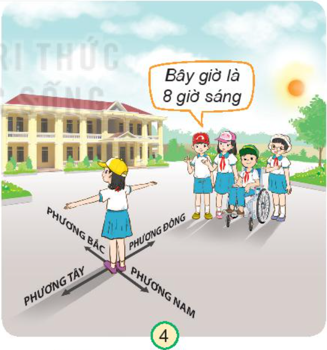 – Bước 1: Quan sát để xác định phương Mặt Trời mọc vào buổi sáng, phương Mặt trời lặn vào buổi chiều.
