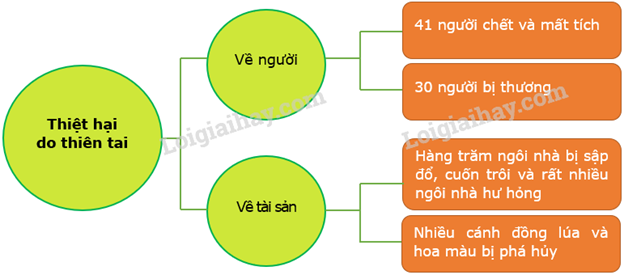 2. Nói với bạn về thiệt hại do thiên tai đó gây ra theo sơ đồ gợi ý sau: