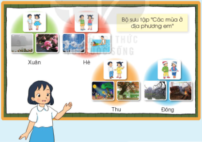 1. Thảo luận theo nhóm và hoàn thành vào bảng theo gợi ý sau: 2. Làm và trưng bày bộ sưu tập “Các mùa ở địa phương em”.