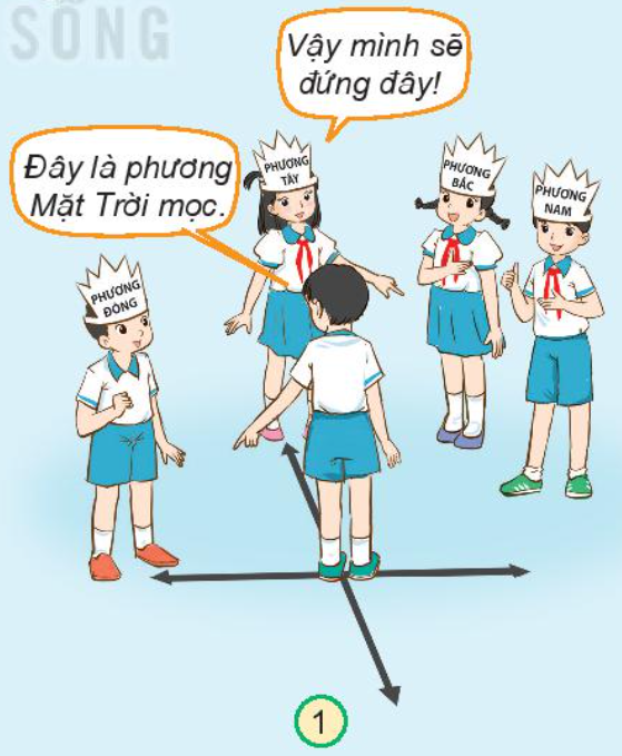 – Bạn quản trò chỉ một đầu mũi tên và hô: “Đây là phương Mặt Trời mọc”.