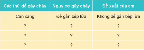 Điều tra, phát hiện những thứ có thể gây cháy trong nhà em theo gợi ý sau:
