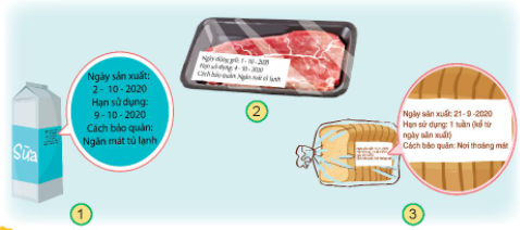Quan sát hình và chia sẻ cách nhận biết về thức ăn, đồ uống… an toàn.