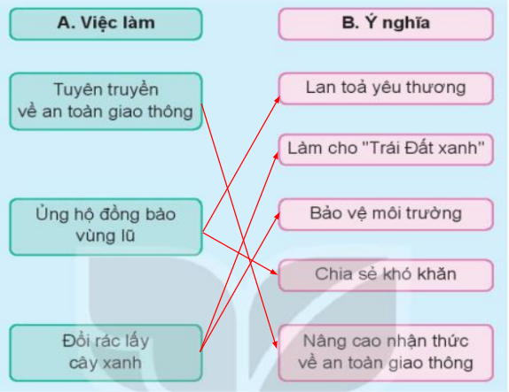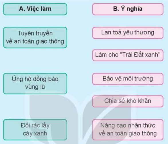 Em ghép việc làm ở cột A với ý nghĩa tương ứng của từng hoạt động ở cột B.