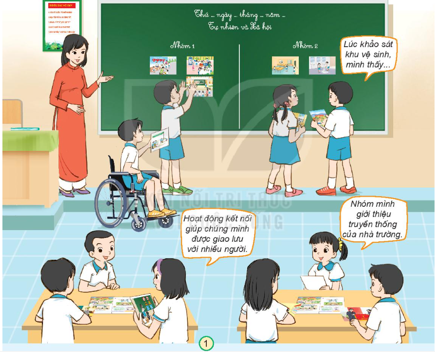 Cùng tham gia trưng bày tranh, ảnh về chủ đề trường học. Giới thiệu nội dung các tranh, ảnh nhóm em lựa chọn và nói ý nghĩa của những hoạt động đó.