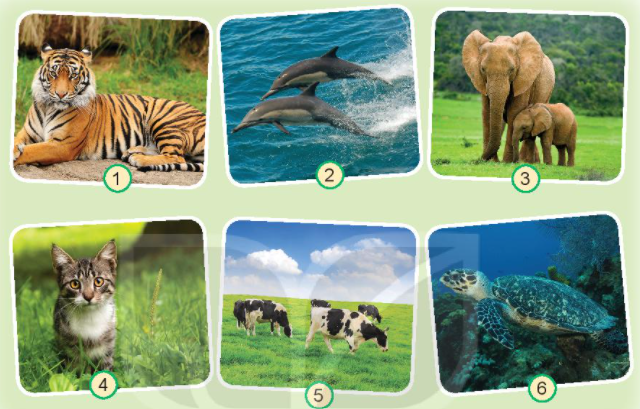 – Nơi em đang sống có con mèo, con chó, con gà,… Chúng đều sống ở trên cạn.
