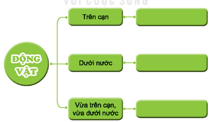 3. Viết tên hoặc dán tranh, ảnh các con vật theo sơ đồ gợi ý sau: