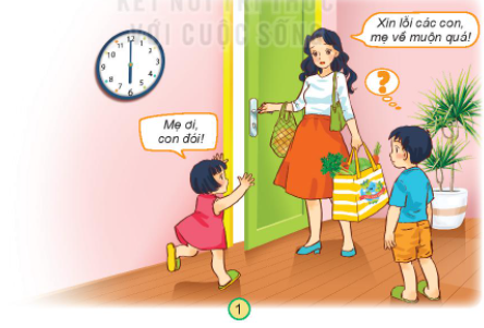 – Tranh 1: Nếu là bạn nam trong tranh, em sẽ chạy ra xách đồ đỡ mẹ và hỏi: “Mẹ có mệt không ạ?”