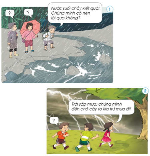 – Hình 1: Em sẽ khuyên các bạn không lội qua sông vì rất nguy hiểm.