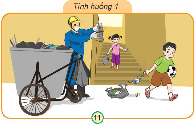 – Cách xử lý tình huống 1: Em sẽ nhắc nhở bạn không nên vứt rác bừa bãi ra đường như vậy, bạn nên quay lại nhặt rác bỏ vào thùng và xin lỗi bác lao công. Hành động đó của bạn vừa làm mất vệ sinh môi trường và không tôn trọng bác lao công.