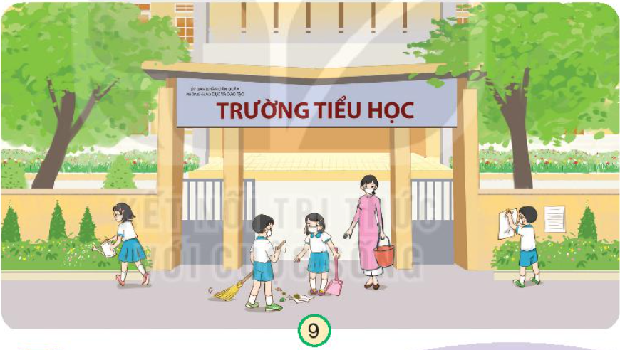 Cùng các bạn làm vệ sinh trường học và khu vực xung quanh trường.