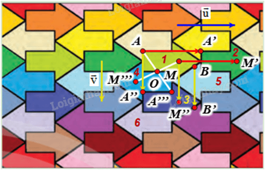 Giả sử \(\vec v\) là vectơ có phương vuông góc với trục đối xứng của hình mũi tên 1, độ dài bằng độ dài từ điểm A đến điểm A’’ (hình vẽ).