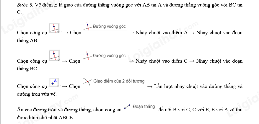 để kiểm tra các góc của tứ giác ABCE, ta thấy các góc của bốn góc này đều là góc vuông (kết quả kiểm tra như trên hình vẽ).