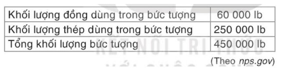 Khối lượng thép dùng trong bức tượng là: 250 000 . 0,45359247 = 113 398,1175 (kg).